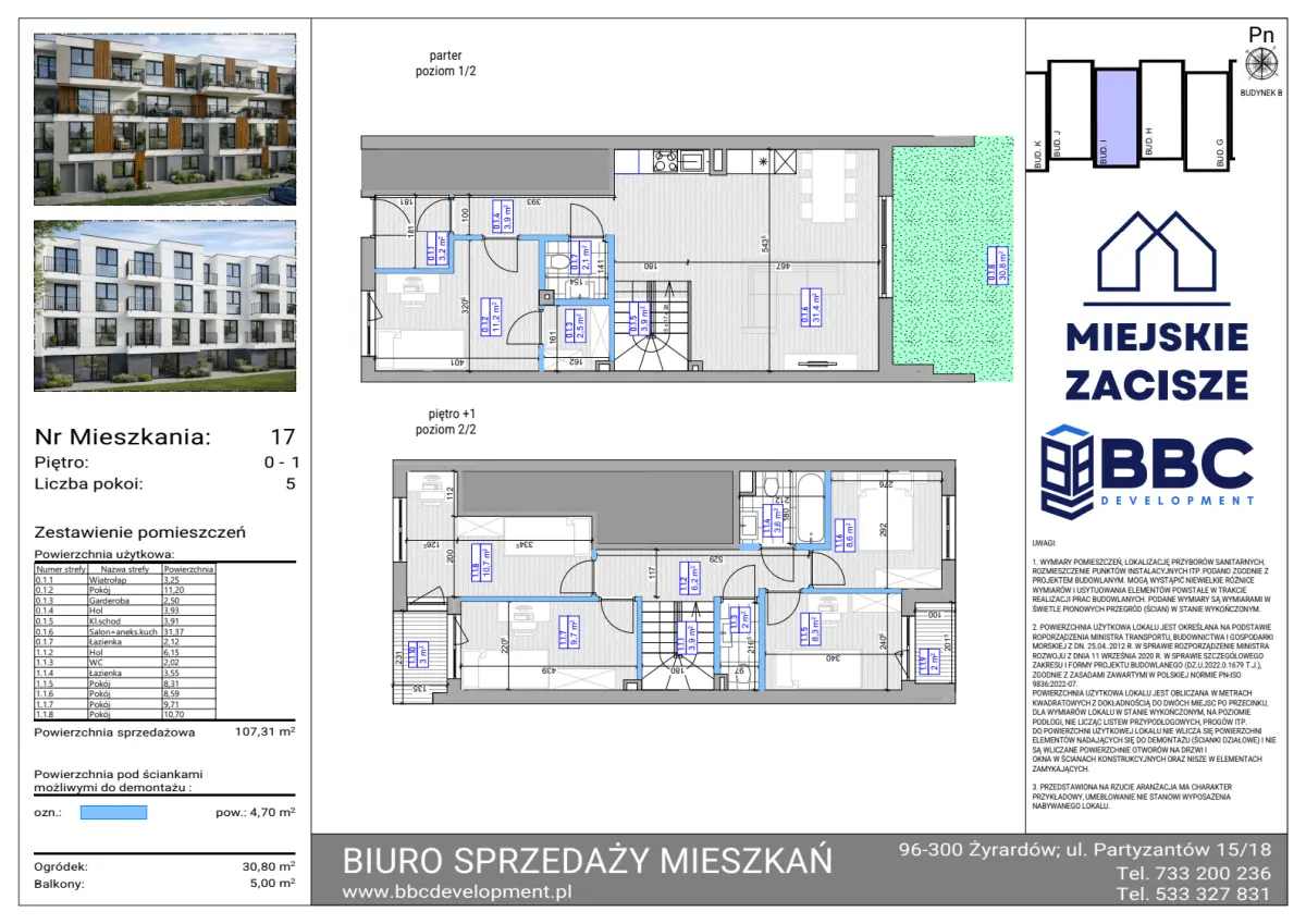 Powierzchnia użytkowa: 107.31 m2Balkon: 5 m2Ogródek: 30.8 m2