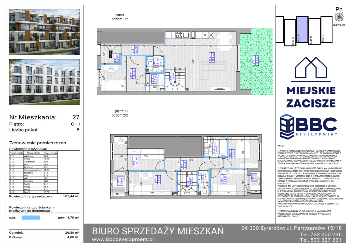Powierzchnia użytkowa: 107.44 m2Balkon: 4.8 m2Ogródek: 26.5 m2