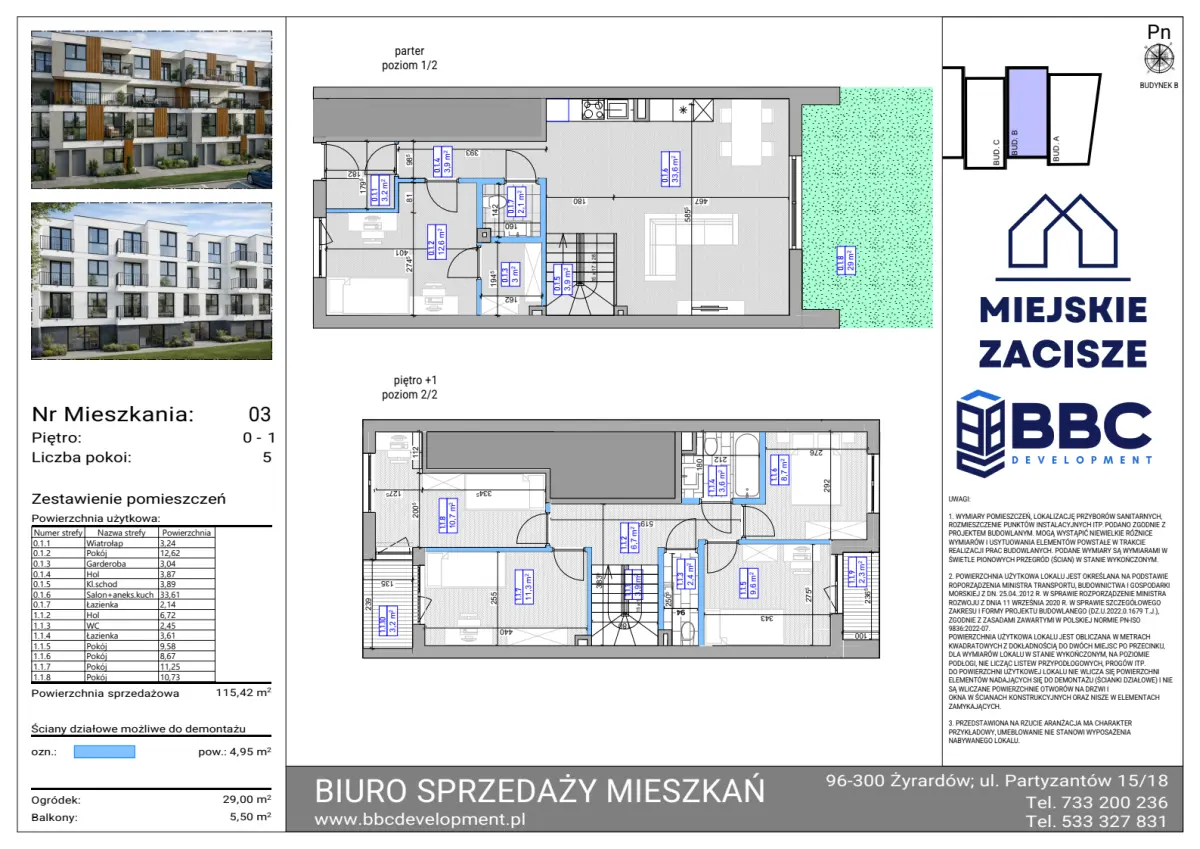 Powierzchnia użytkowa: 115.42 m2Balkon: 5.5 m2Ogródek: 29 m2
