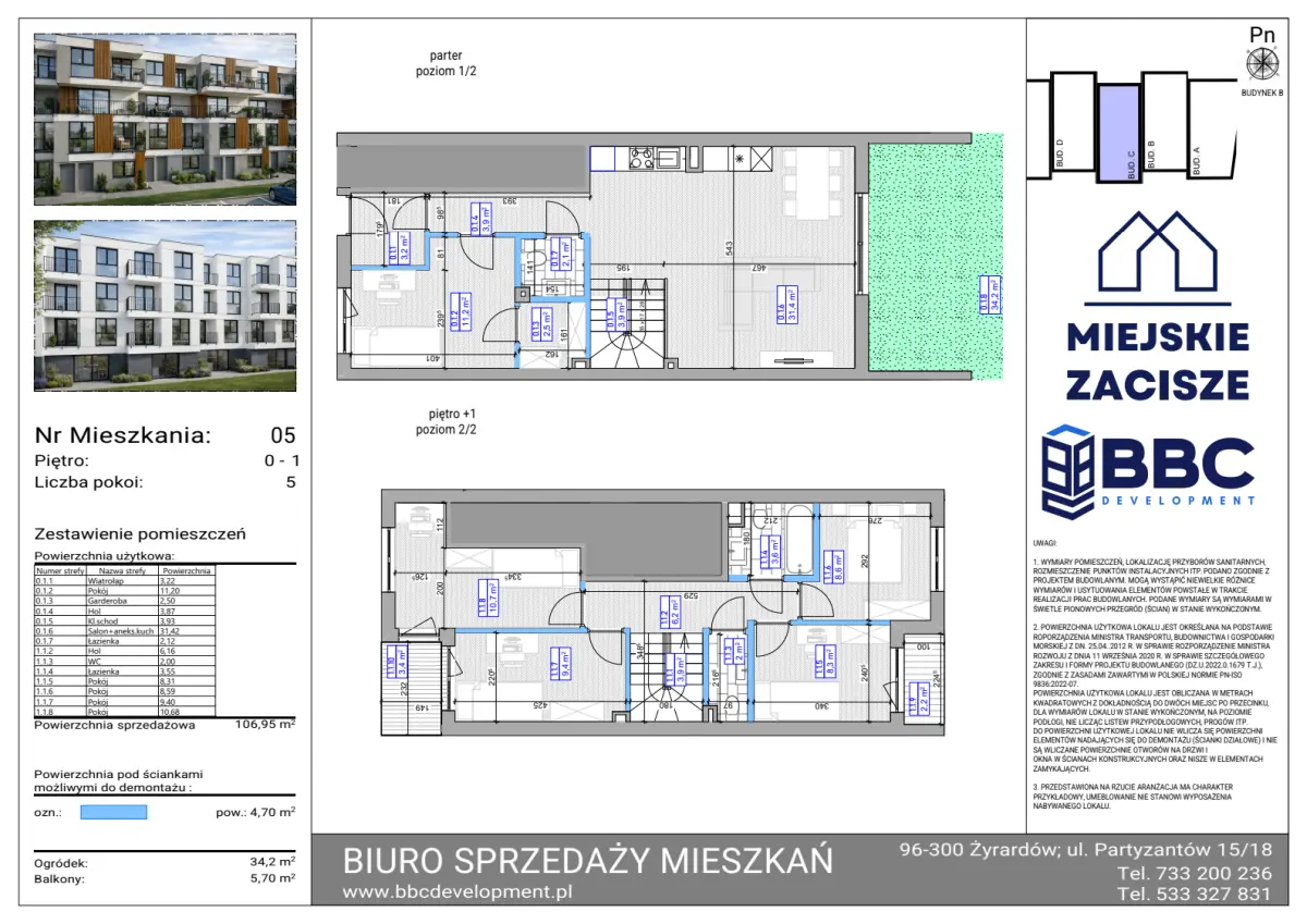 Powierzchnia użytkowa: 106.95 m2Balkon: 5.7 m2Ogródek: 34.2 m2